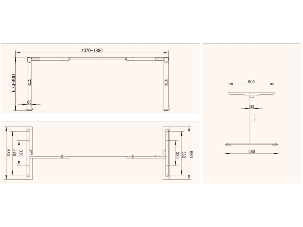 Nohy jsou složeny ze dvou částí, které se navzájem překrývají a zajišťují maximální výšku stolu až 900 mm. Výška podnože lze nastavit v rozmezí 670 - 900 mm, výška lze nastavovat v krocích po 20 mm (první je 30 mm 670 - 700 mm). Na podnoži se nachází pravítko, pro jednodušší nastavení výšky na obou stranách podnože.