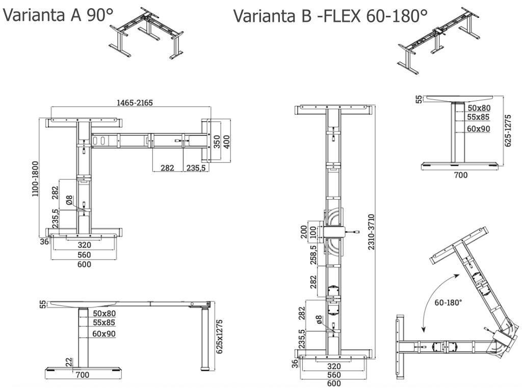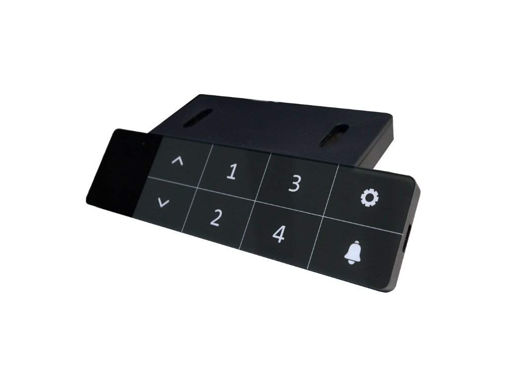 Součástí setu je i ovladač, který Vás na displeji informuje o aktuální výšce stolu. Obsahuje také ovládací tlačítka s pamětí a dvě tlačítka pro posuv. Rychlost posuvu teleskopické podnože je 30 mm/s.