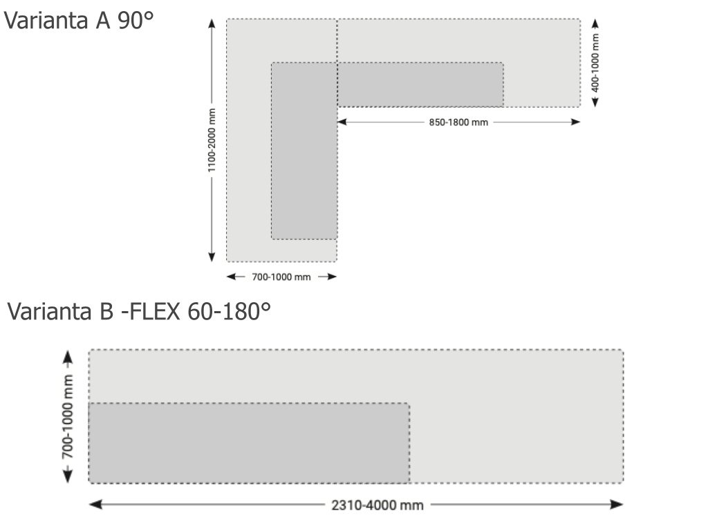 | Rozsah šířky stolu (mm): | 1100 - 1800 |