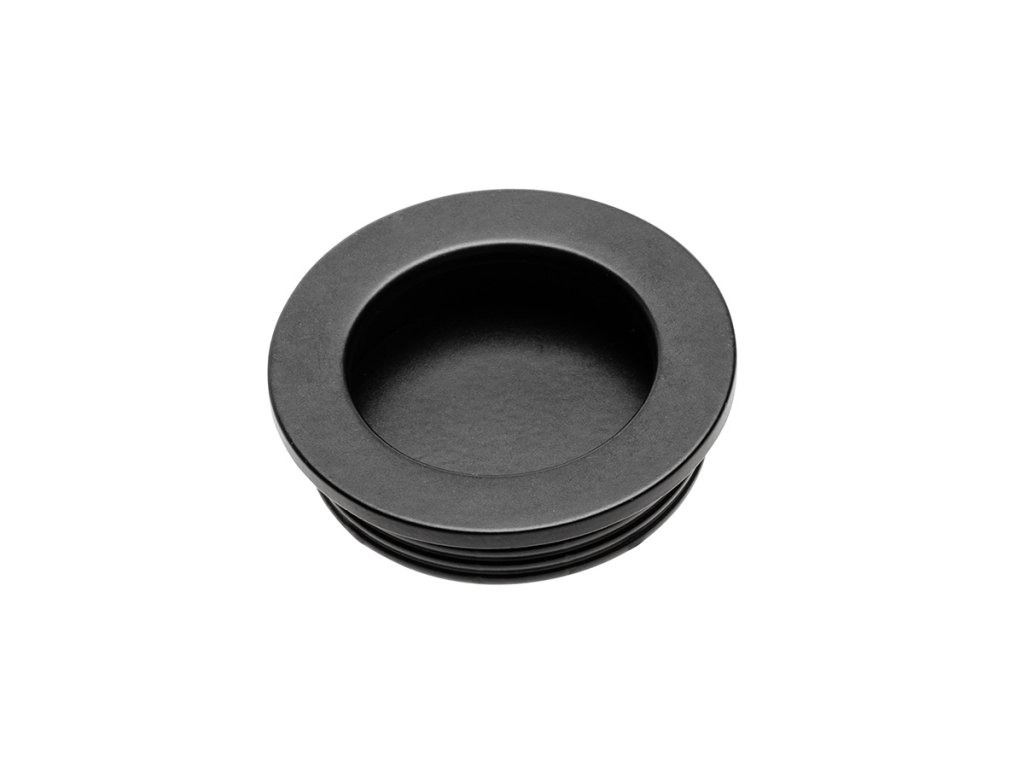 Tradiční kulatá zápustná úchytka v černé povrchové úpravě, která se montuje do montážního otvoru o průměru 35 mm.