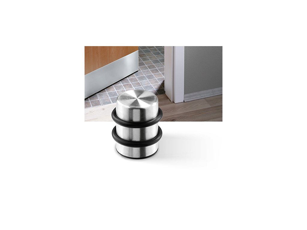 Zarážka - špalík nerezová volně stojící. Spodní plocha je s protismykovou gumovou podložkou, která chrání podlahu proti poškrábání. Hmotnost 1,33 kg.