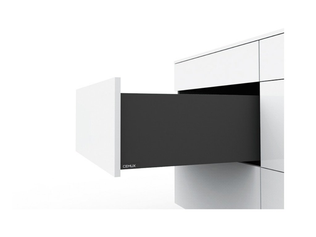 Plný výsuv H-Box s extrémně tenkou bočnicí o síle 12,8 mm a s integrovaným plynulým dotlumením Soft-close.