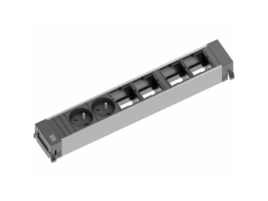 Zásuvková jednotka Bachmann Power Frame / Cover 6násobná - 4x uživatelský modul, 2x 230V 916.023 - profil hliník