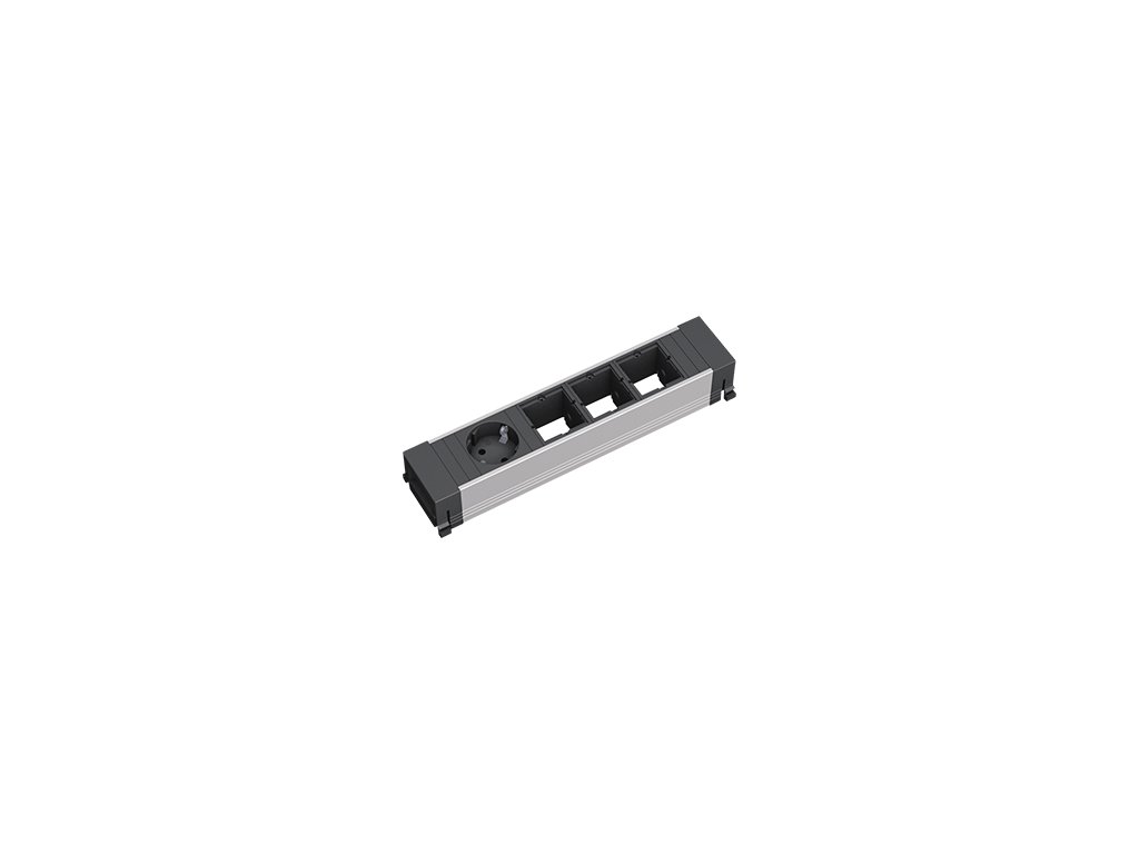zásuvková jednotka pro systém zásuvek TOP FRAME a CONFERENCE. Uživatelský modul lze vybavit zásuvným datovým modulem různého typu nebo zásuvným modulem pro KEYSTONE. Profil zásuvkové jednotky je z eloxovaného hliníku.