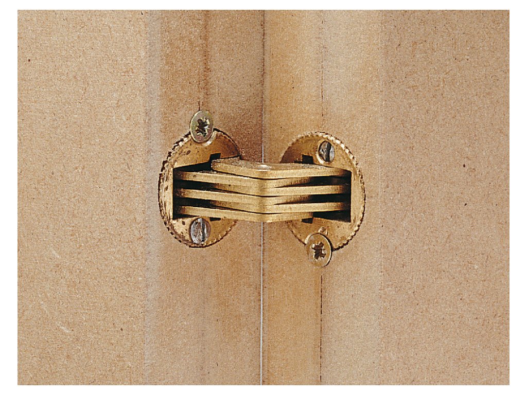Mosazný závěs pro skrytou montáž do hrany desky nebo dveří.